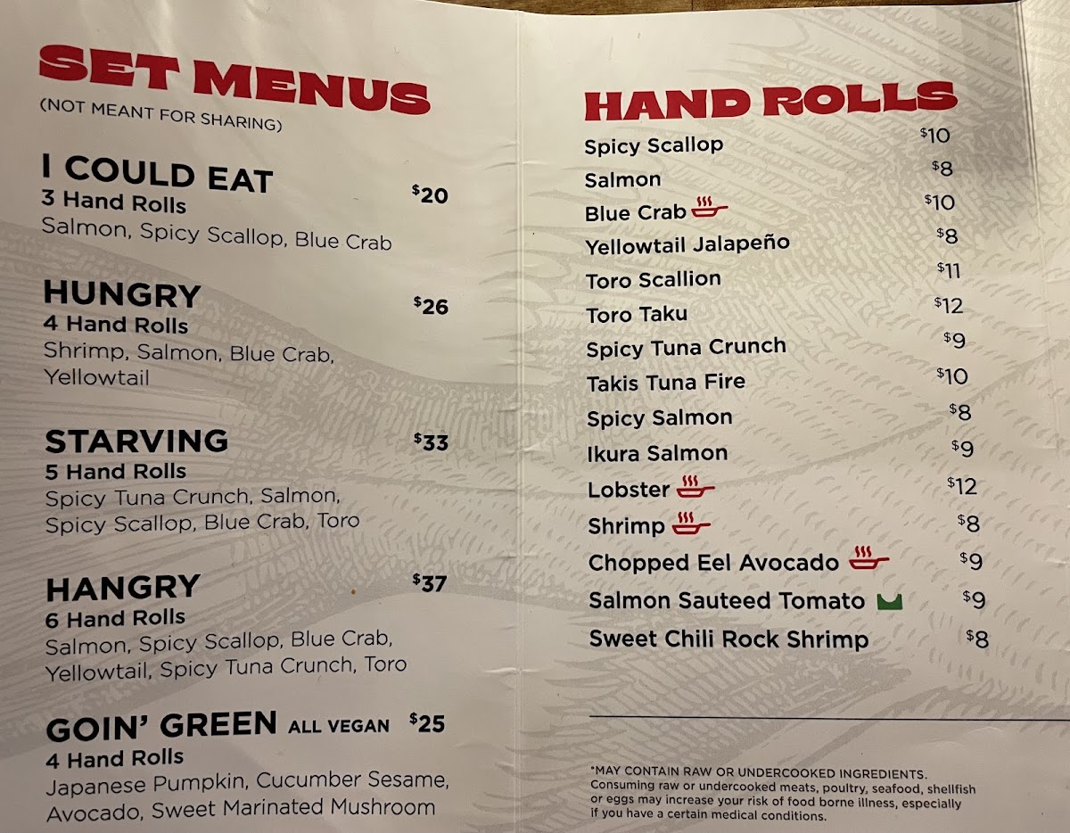 For those wanting to customize their meal, the Build A Sushi Box option allows sushi lovers to select from small (16 pieces) or large (24 pieces) rolls, served with ginger, wasabi, and soy sauce. Additional beverages, such as Mexican Coke and Fiji Water, complement the menu perfectly.